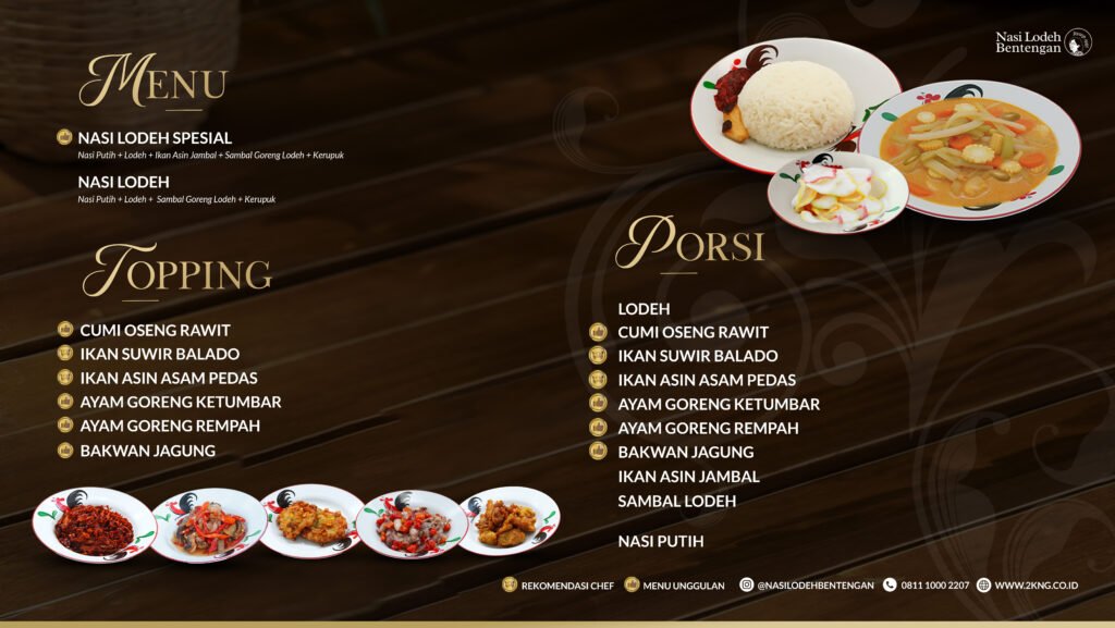 Dari kelezatan dan kehangatan itu, lahirlah Nasi Lodeh Bentengan, sebuah persembahan untuk melestarikan cita rasa “Orang Benteng” yang autentik dan penuh makna. Setiap porsi disajikan dengan sepenuh hati, menggunakan bumbu racikan khas dan bahan pilihan yang menjaga rasa rumahan tetap hidup di setiap suapan.