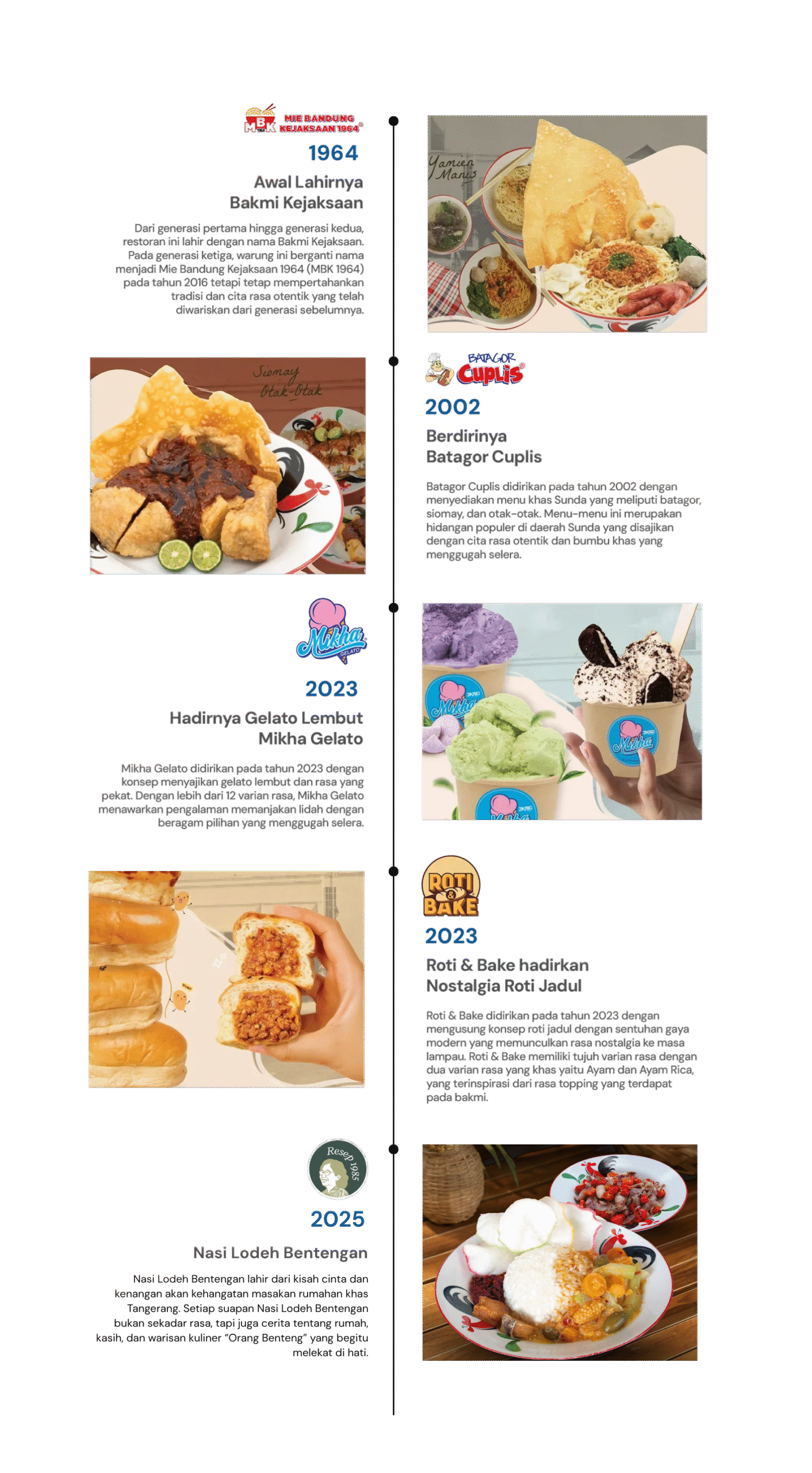 Mie Bandung Kejaksaan 1964 (MBK 1964) dan Batagor Cuplis berfokus pada mie dan juga batagor khas Bandung yang sudah tersebar di seluruh Indonesia (Jakarta, Bogor, Tangerang, Depok, Bekasi, Bandung, Surabaya, Bali, Pekanbaru, Bengkulu, Samarinda dan banyak kota lainnya).